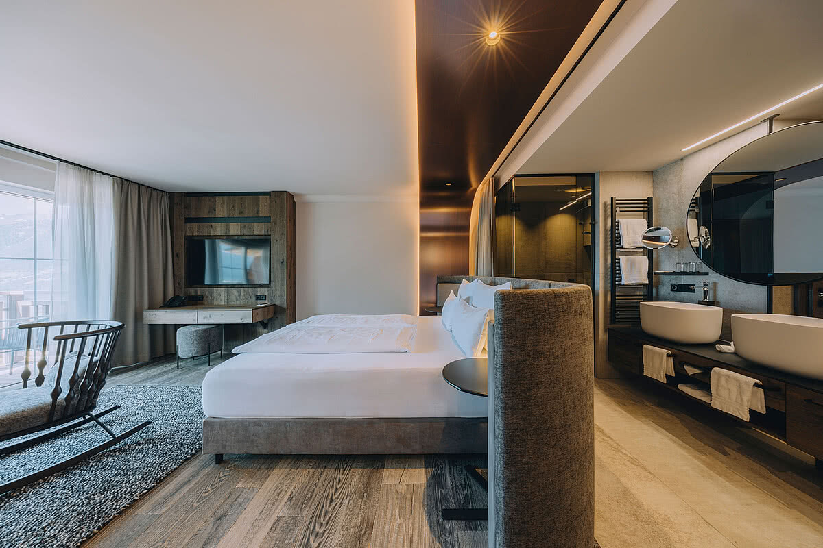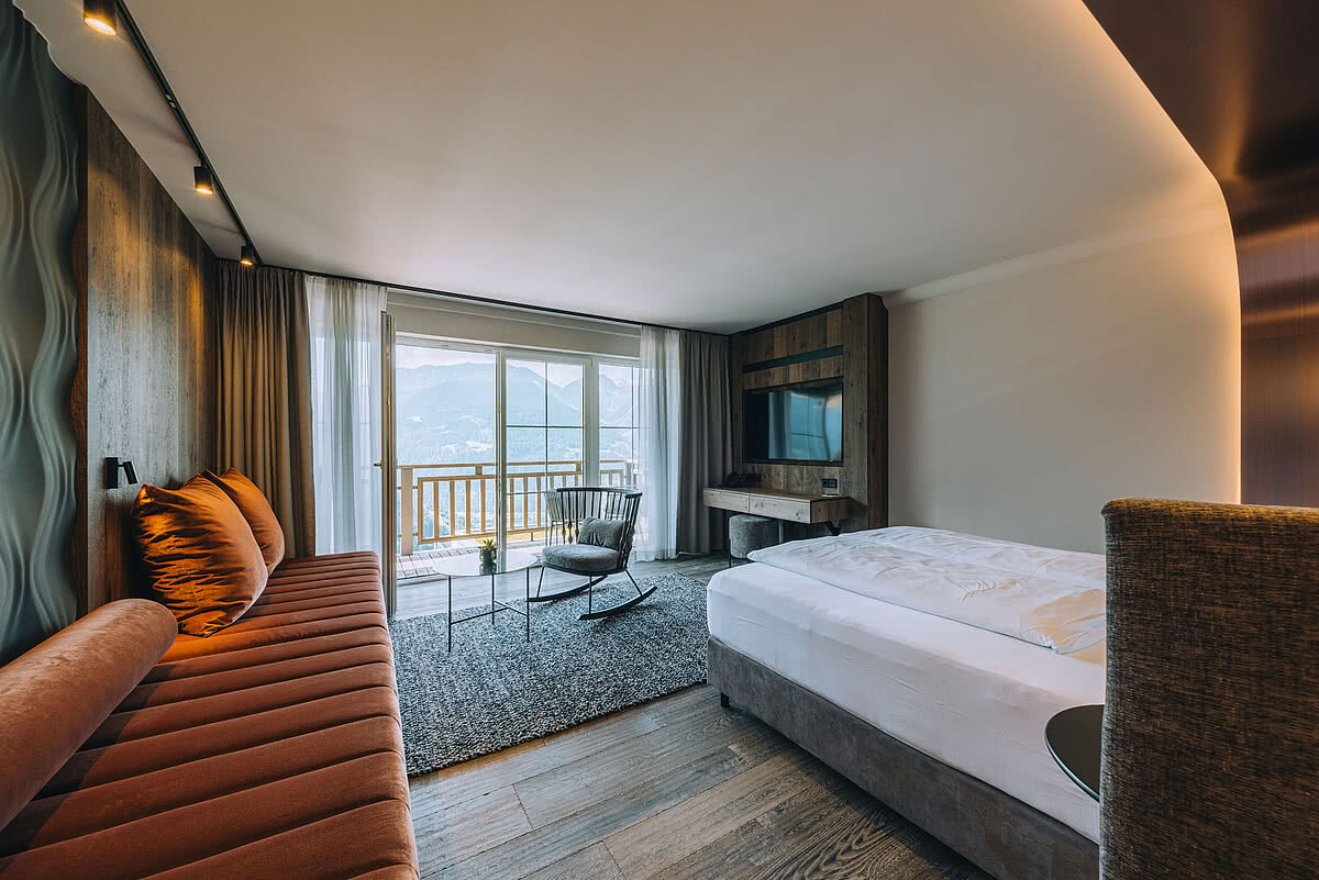 Our new Silvretta Deluxe rooms really are "deluxe"! Enjoy the view of the famous "3 towers" from the magnificent south-facing balcony. Even from your bed or the cosy rocking chair.