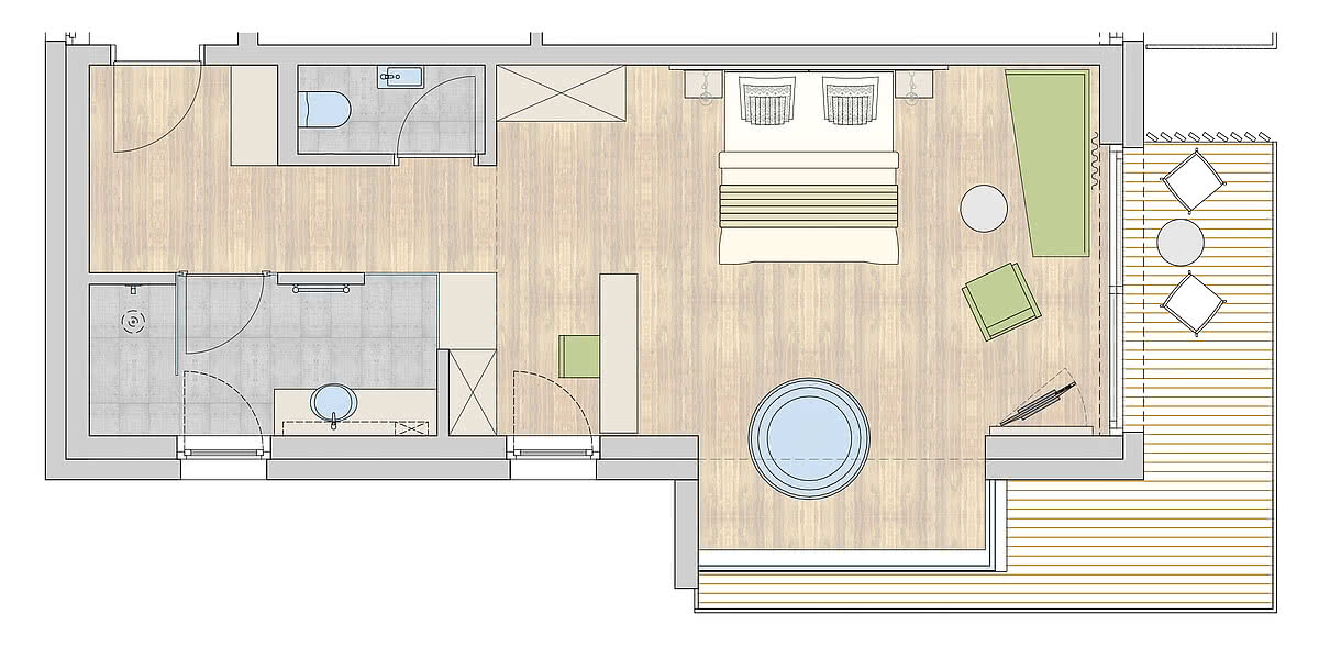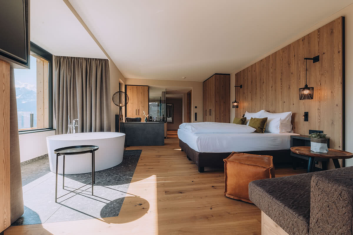 Our Silvretta Highlight category impresses with its innovative alpine living style, a freestanding tub with direct panoramic view, and double balconies on both the south and east side. And the view? Simply sensational!