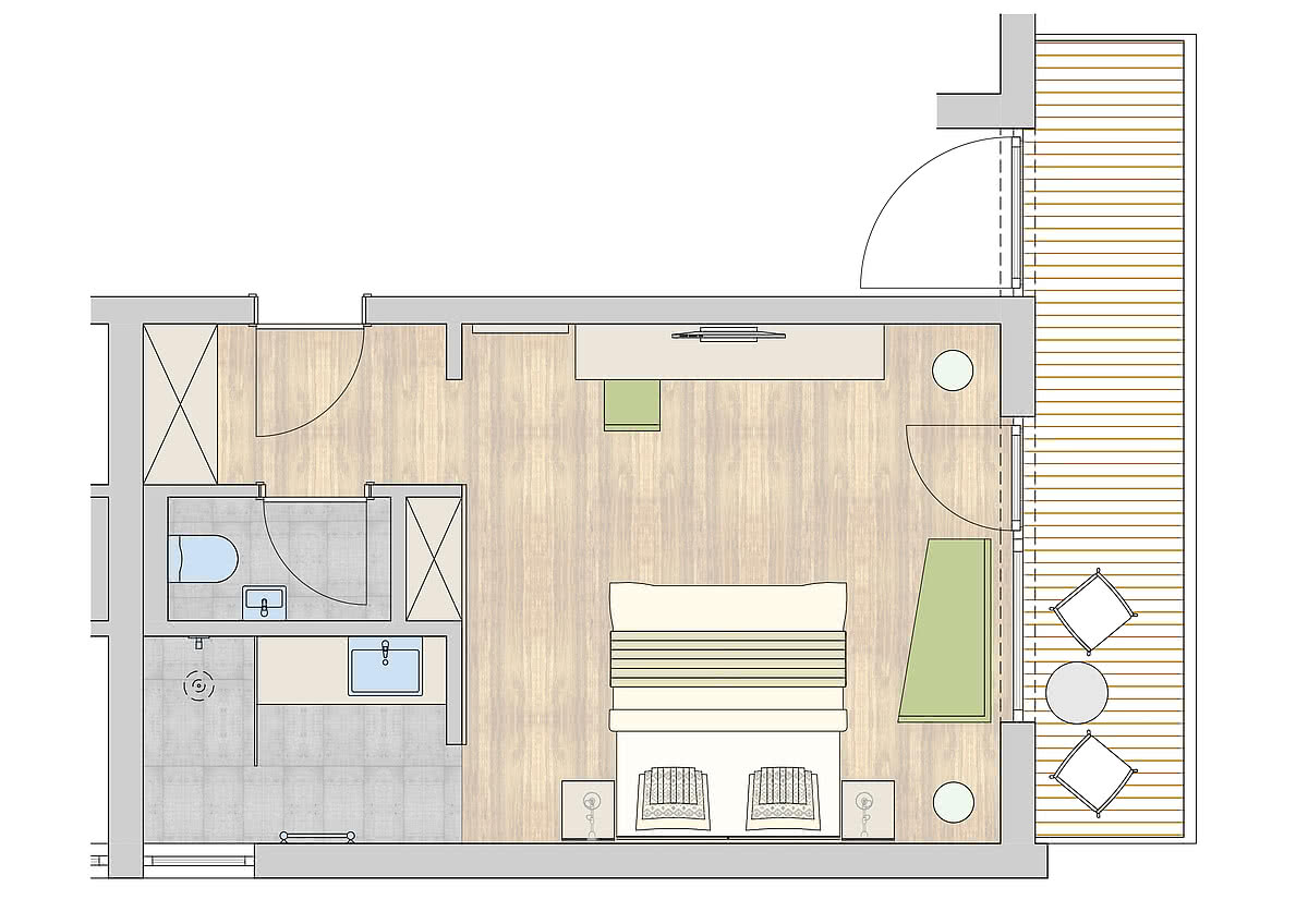 Peace and relaxation await you in this single room, as you feel transported into another world high above the Montafon. Enjoy the incomparable view from the beautiful balcony.